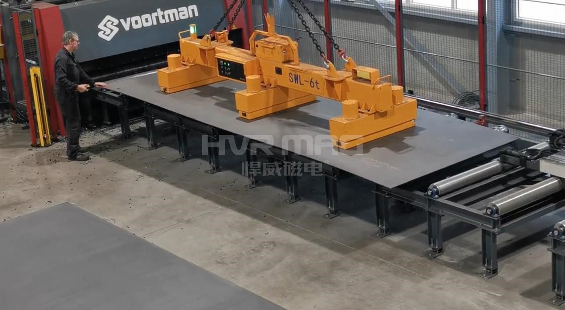 专注磁力起重技术的创新与研发十多年,悍威磁电的充电式钢板磁力吊具,让您的钢板搬运更灵活安全更有保障!