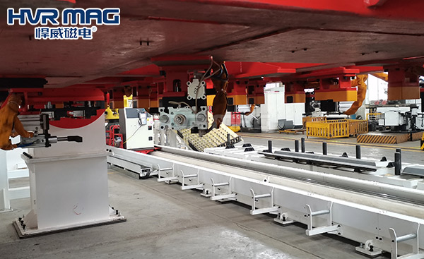 此前国内某自动化集成商与悍威磁电合作改造自动化集成焊接流水线项目,该项目原先用人工拼焊夹具和压板进行加工,每5人操作一套工装,经过改造后焊接固定工装采用了悍威磁电特制的电永磁铁进行加工,一人可看一条流水线,通过电永磁铁进行工件的固定,全程外接PLC设定程序,整个生产环节基本可以自动化,帮助企业优化了生产环节以及生产效率。