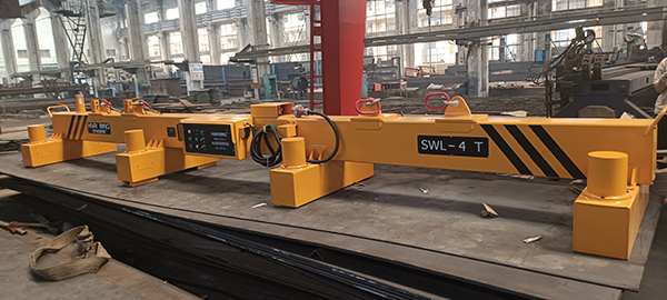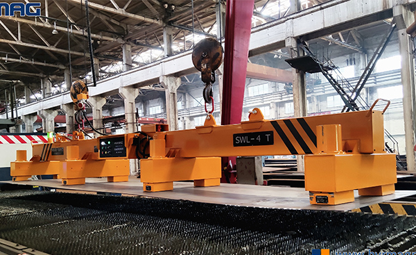 钢板吊装工具将钢板送入切割机进行加工,客户之前使用传统钢板夹钳搬运钢板;如今,他们正在选择一种新的起重设备——钢板专用磁力吊具。