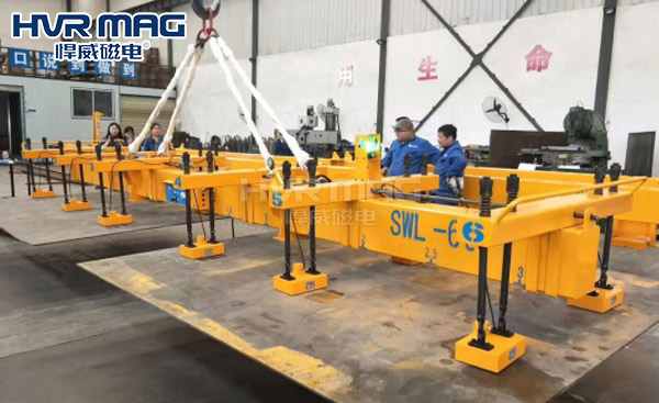 阅读至此,相信不少朋友会有这样的疑惑,既然不用起重电磁铁吊钢板了,那目前各大钢结构厂到底用何种吊具吊钢板呢?答案就是起重电永磁铁。因为它仅在充磁与退磁瞬间1秒使用电能,工作状态无需用电,断电不失磁,更加安全节能。而且在后期的使用过程中,基本无需维护,从长远来看,是真正安全可靠方便快捷的钢板专用吊具!