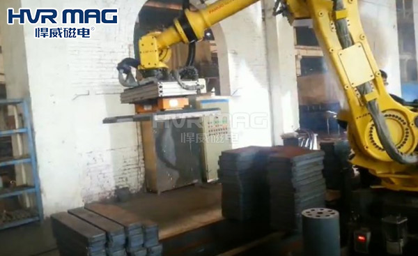 码垛机械手在大型工厂中现已成为必不可少的一个工具,助力工业生产自动化智能制造。机器人工作高效,可以代替人工去恶劣的环境工作,有着很强的适用性,使用面积小,让空间充分的使用。码垛机械手自动化电永磁铁为工厂实现了自动化运转,同时也节省了开支,以一敌六的高产出实在是人工所不能到达的高度,工业自动化正在向我们靠近。在自动化的时代,就应该是用自动化的设备,跟上时代的潮流才是正确的选择。