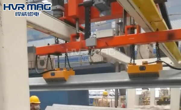 悍威磁电可根据客户需求,支持定制桁架起重电永磁吊具。如吊中厚钢板、薄钢板、钢板侧吊、切割线上下料、圆钢或钢管、钢坯、钢带卷、异形工件等均可提供专业可靠的解决方案。
