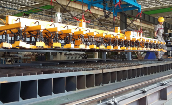 客户是山东某五金及汽车配件加工与销售的企业,通过网络的渠道了解到悍威的起重设备产品后进行的起重吊具设备改造定制化解决方案。该客户主要想改造激光切割上料的工序,因为新入场了一台激光切割设备价值不菲,原来是采用吊钩+手动永磁铁的方式结合搬运,每次上料时,多人协同配合才能完成上料操作,并且需要员工爬上爬下,工作强度高还存在一定的安全隐患,让人十分担忧。