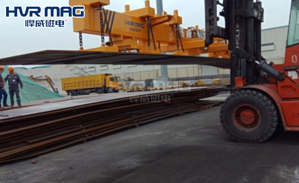露天码头,物流等外部空间需要转运钢板时,很多企业要求高效率,安全性,悍威磁电一直在做的一款叉车充电式电永磁吊具就能很好的满足客户要求。他有哪些优点呢。