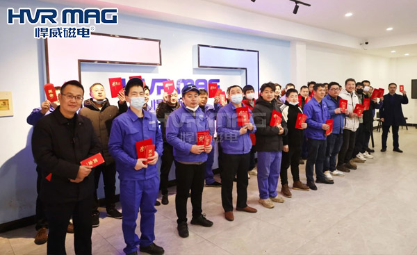 悍威磁电公司总经理任争胜先生为全体员工发放了开门红包,每个人脸上都洋溢着笑容,喜气洋洋,随后为2022年表现优异的员工颁发奖金和荣誉证书,红包和荣誉证书分发完毕后,悍威磁电总经理任争胜先生及各部门领导上台讲话,对2022年进行总结,并致以新年的希冀与祝福,最后在一片掌声中结束了开工仪式。
