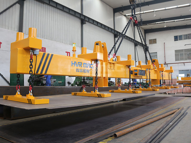 通过改进整体技术方案,悍威磁电用32个电永磁铁的吊装方案吊装16米长的薄钢板,开创了国内最长薄钢板吊装案例的先河。