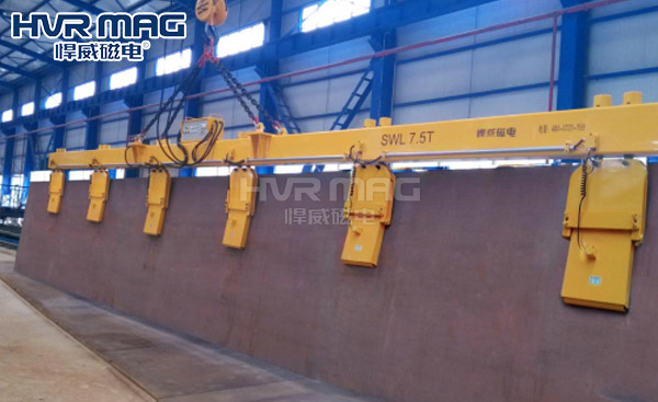 无论是钢板竖吊磁力吸盘吊具还是钢板平吊磁力吸盘吊具,悍威磁电的磁力吸盘吊具都大幅度提高了钢板搬运和翻转效率。车间吊装无小事,记得选用合适的吊装设备,切不可因为一时之利,拿生命作为赌注。