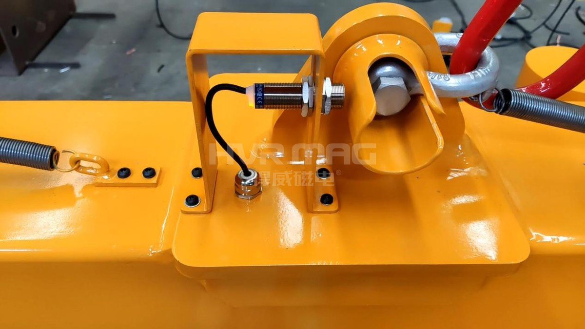 如今磁力吊具运用到各个钢材搬运岗位中。悍威磁电进一步保障安全生产,在磁力吊具中加入落地监测功能,以防在磁力吊具工作中被误按退磁按钮发生掉落事故。