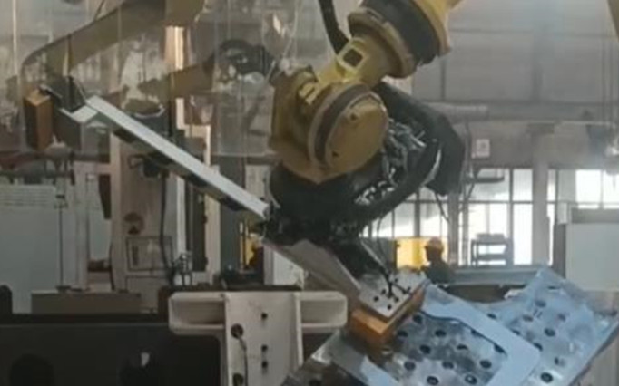 下图是悍威磁电的电永磁磁力抓手,在一家工厂的自动化生产线上机器人手臂上的应用。我们可以从此案例,了解此机械臂夹具如何帮助提高客户工厂的金属工件的组装效率。