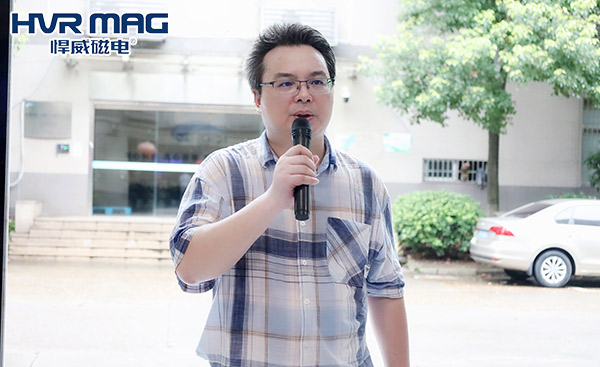 随后,悍威磁电副总经理黄大启表示,在接下来的时间里,将朝着降本增效、精益生产的方向努力,进一步提高公司产品的出品质量,同时打造安全生产的5S车间;副总经理黄斌也表示将带领技术部全体工程师们准确高效地完成客户的设计方案,致力于为广大客户提供更为满意的电永磁产品设计方案。