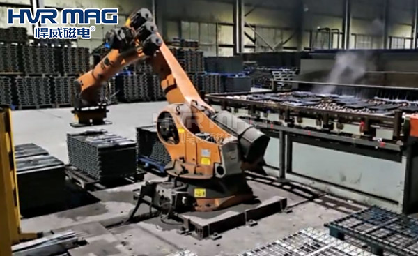 为了彻底解决这一问题,客户决定将整条生产线改造为自动化焊接生产线,通过网络渠道找到了悍威磁电,经过详细的沟通,悍威磁电的工程师针对客户的需求提出了定制的解决方案。从焊接过程中的上料、下料到工件的焊接和固定,整个过程都是利用自动化电永磁铁来完成。