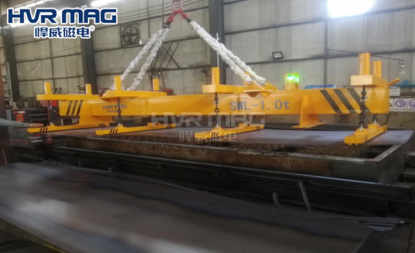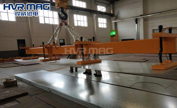 悍威磁电的电永磁吊具拥有很多中,中厚板专用吊具,薄板专用吊具,多张专用吊具,型材等其他专用吊具。其中薄板起吊电永磁吊具更加适合薄规格钢板的吊装和搬运。对厚度小于6mm的钢板提供堆叠的单张处理,采用薄板永磁铁的磁场强度/磁场深度可以根据板的厚度而减小或增加。这些功能可以是工人更快的适应和使用该吊具,在吊具与钢板接触的时候,磁铁会已预充磁将钢板搬运起来,以便从堆垛中抬起单张钢板,然后操作员在转移负载之前进入“全磁”水平以提高安全性。