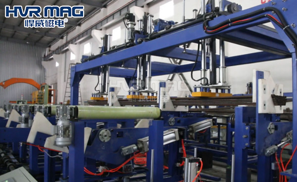 电永磁可以通过机器人或者桁架、智能行车等智能设备结合在一起。通过PLC运行程序,完美的进行搬运各种各样的工件,并且可以通过PLC设置的信号值,搬运不同大小和厚度的工件,实现针对不同工件使用不同透磁深度和不同磁铁分组的控制。采用电永磁铁可以加速提升整个生产车间的生产速度。
