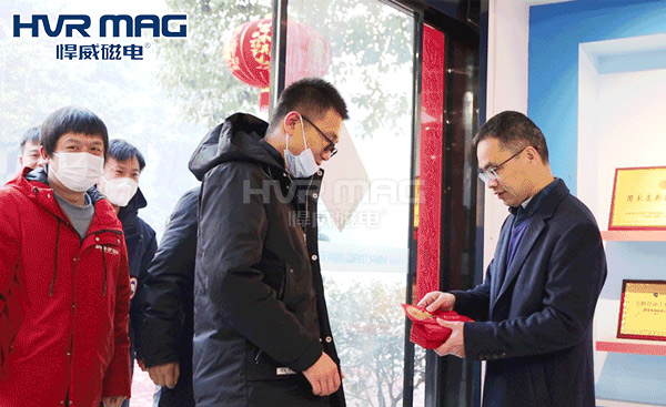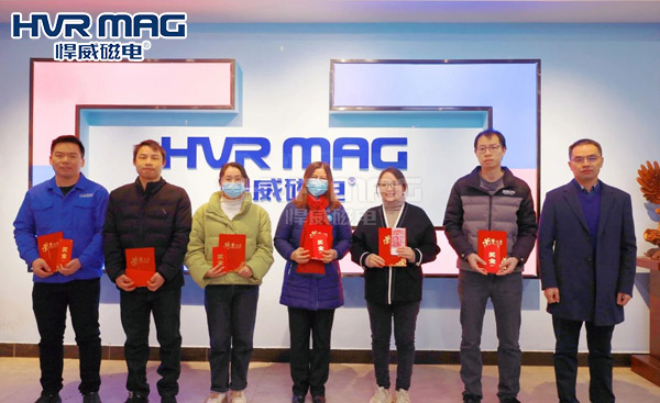 悍威磁电公司总经理任争胜先生为全体员工发放了开门红包,每个人脸上都洋溢着笑容,喜气洋洋,随后为2022年表现优异的员工颁发奖金和荣誉证书,红包和荣誉证书分发完毕后,悍威磁电总经理任争胜先生及各部门领导上台讲话,对2022年进行总结,并致以新年的希冀与祝福,最后在一片掌声中结束了开工仪式。