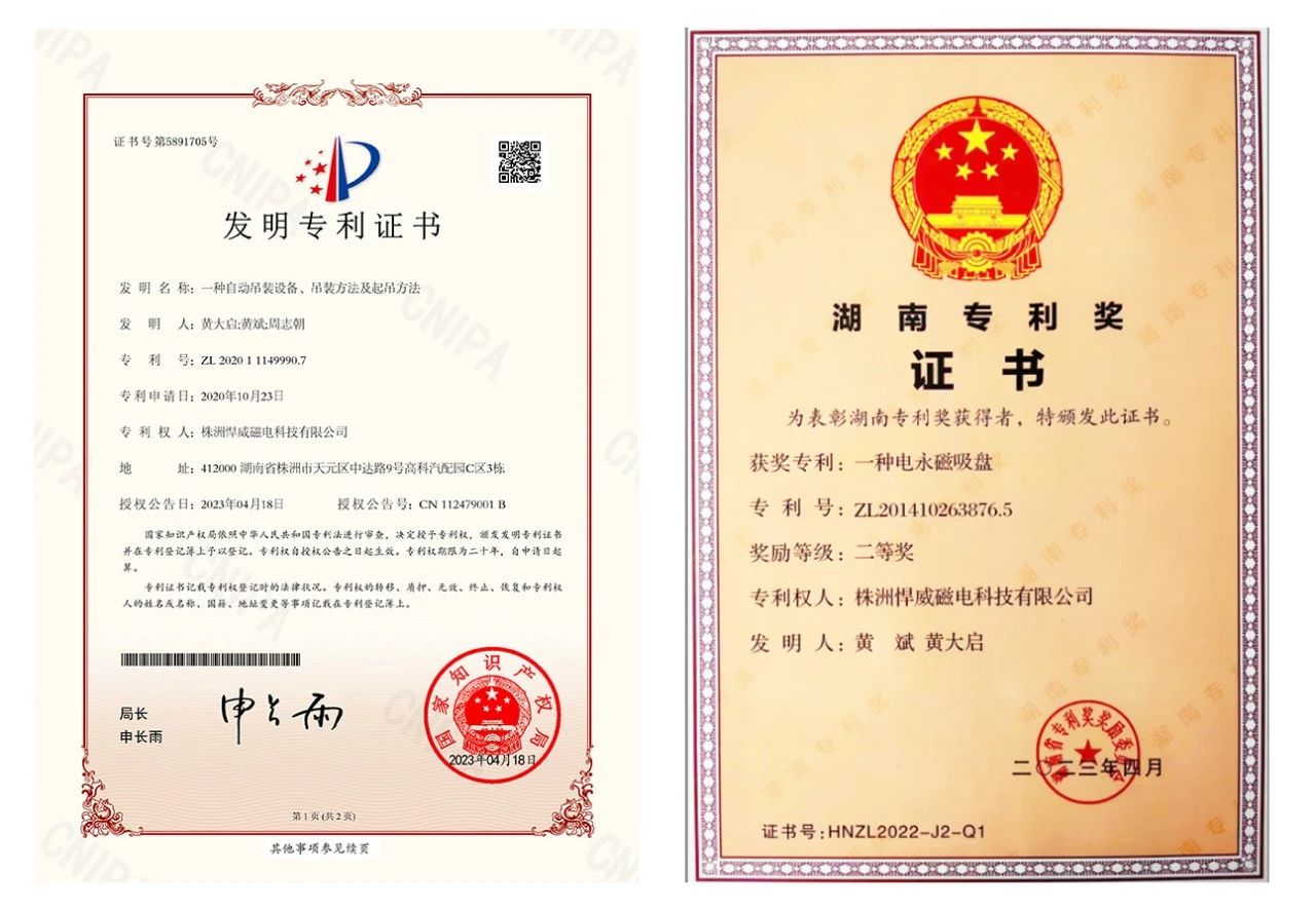 同时,2023年新授权了2项发明专利和1项美国专利。悍威磁电研发的电永磁吸盘专利,也荣获湖南省专利二等奖。悍威磁电的创新之路还在继续。