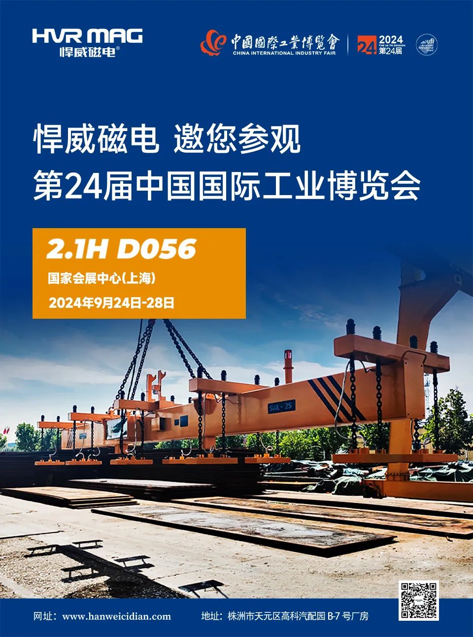 第24届中国国际工业博览会将于2024年9月24日-28日在国家会展中心(上海)举行。悍威磁电将携最新的科技成果亮相。我们诚邀您共赴这场科技与工业交织的盛会,一同感受智能制造的变革力量。
