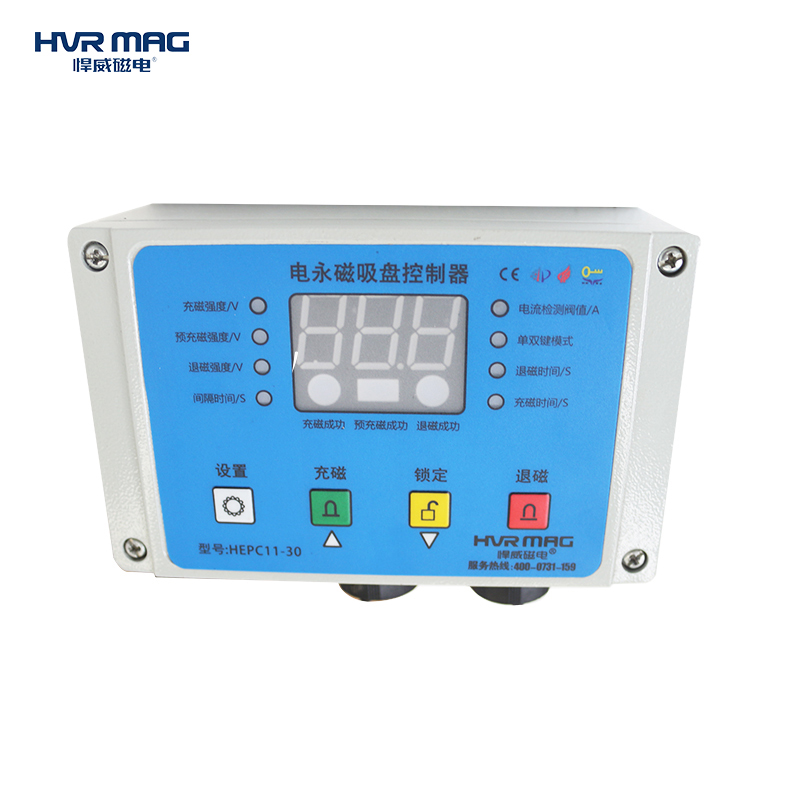 电永磁控制器又称电永磁充退磁控制器、电永磁吸盘控制器(电磁控制器),是以单片机为核心的智能化控制系统,悍威电永磁控制器运用了无触点电子电路,采用了超耐压的大功率输出器件;可靠的硬件保护和低微的功耗,确保控制系统可以安全可靠的长时间使用。