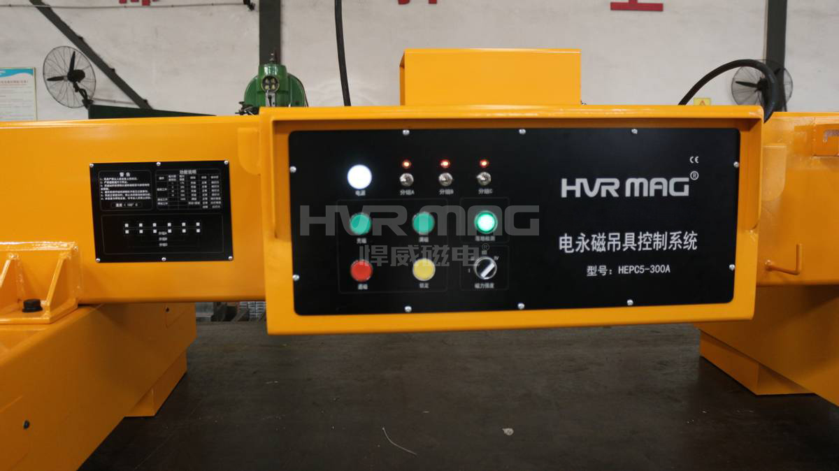 如今磁力吊具运用到各个钢材搬运岗位中。悍威磁电进一步保障安全生产,在磁力吊具中加入落地监测功能,以防在磁力吊具工作中被误按退磁按钮发生掉落事故。