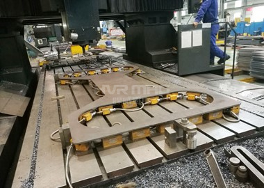 图中的电永磁吸盘上下两面均有磁力,单面最大吸力640kg, 可自由组合摆放,用于不同工件加工。