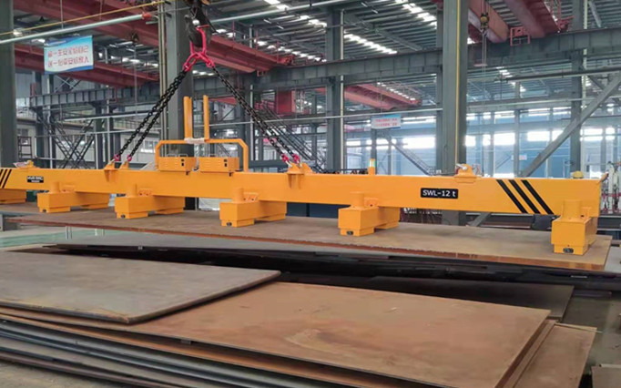 在山东某煤矿设备制造商的车间里,钢板夹和吊钩曾经是他们用来搬运各种尺寸的钢板和切割件的主要吊运工具。但现在,却不再是了,因为他们从悍威磁电最新购买了一套钢板磁力吊装设备,钢板磁力吊具。