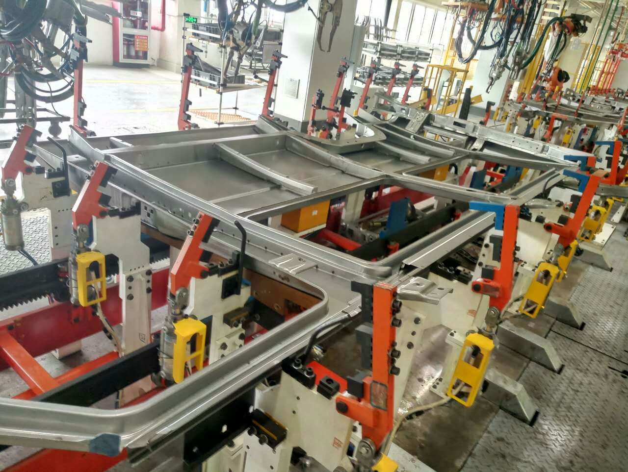 改善前:汽车生产线中侧壁焊接工位以往焊接夹具为气缸夹紧,中间位置为真空吸盘夹紧,吸力大小不均匀,造成无法夹紧工件的问题