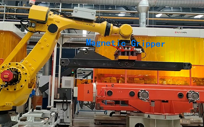 悍威磁电的磁性抓取解决方案,用于自动焊接生产线中的拾取和放置机器人,由两部分组成,在以下各部分中分别列出。