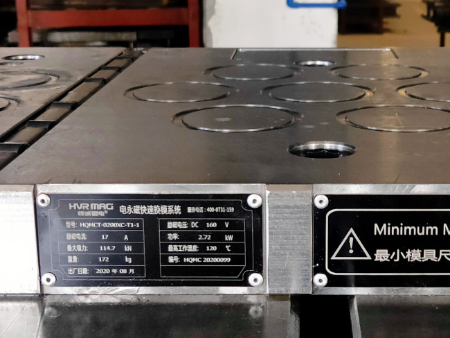 电永磁快速换模系统(磁力模板)一是能够直接降低换模时间,提高设备利用率;二是可以通过缩短换模时间增加换模次数而改变大批量生产模式,减少库存。换模时间从改善前的50分钟缩短至改善后的18分钟,低减62%,超过了目标低减30%一倍。