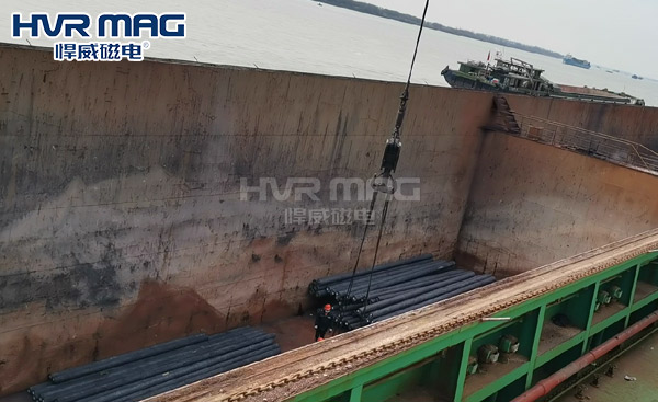1,单纯的电永磁方案可以给到客户,以2块大型电永磁铁进行吊装,要求在吊装时满足磁铁能与产品进行接触。需要用户及终端在装运时对钢管进行有规律的“码垛”,方便我电永磁吊具吊装。