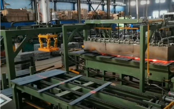 下图所示,是一家弹簧钢板设备的生产车间一角。什么是弹簧钢板?它指的是扁平长方形的钢板,呈弯曲形,以数片叠成的底盘用弹簧,一端以梢子安装在吊架上,另一端使用吊耳连接到大梁上,使弹簧能伸缩。