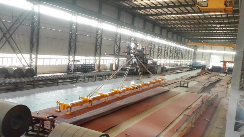 2、吊具横梁具有多达20个吊点使钢板吊运更稳定,控制系统分组适应吊运不同规格钢板吊运,操作简单,基本没有维护成本。